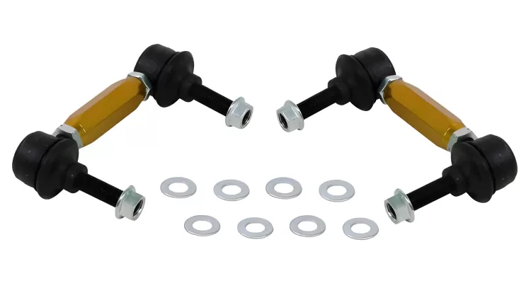 Moreover, stock end links can break, their bushings can collapse, and they can even damage the control arm mounting point in some cases. Whiteline sway bar links fix all these issues. By starting with a stiffer end link body to prevent any breakage even under the hardest race conditions. Using heavy duty steel ball joints or their proprietary synthetic bushing material allows the end link to move as designed without deflecting under heavy loads, which is what can lead to damage to other suspension components. Most applications also utilize a turn buckle center section allowing you to make small adjustments to the end link to account for changes in ride height and to allow you to preload the sway bar if needed. Whiteline sway bar links are the best addition to get the most out of your sway bar, upgraded or OEM.