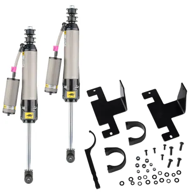 More Info: Rear BP51 internal bypass shocks with fitting kit with reservoir brackets. Suitable for 0-2 in vehicle lifts. Adjustable compression and rebound. Suitable for payloads of 0-880+ lbs.